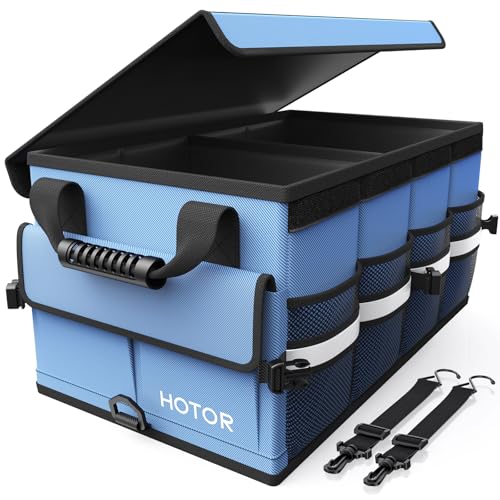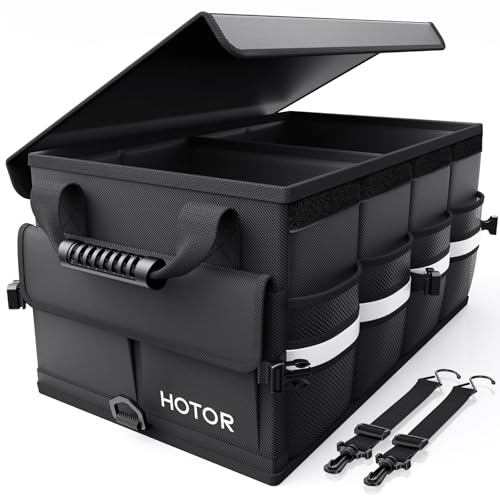 {"about_product": ["MULTI-SECTION LAYOUT: This trunk organizer and storage solution combines two spacious compartments for main items, mesh side pockets for quick access, and covered front pockets to keep small belongings secure. Its divided layout prevents items from rolling around, making everything easy to find.", "COLLAPSIBLE STORAGE: Equipped with sturdy buckles, this 22.1\"×12.6\"×11\" trunk organizer locks securely when folded. You can collapse it fully for compact storage or into one section for back-seat use. It adapts to both heavy loads and light errands, reducing clutter and maximizing space.", "LONG-LASTING MATERIAL: This SUV trunk organizer features water-repellent Oxford fabric and a detachable cover to protect items from dust and rain. Its reinforced base and side panels provide strong structural support, helping the organizer maintain its shape and offering reliable storage.", "STABLE & SAFE: With a non-slip bottom and adjustable securing straps, this car organizer for trunk stays firmly fixed inside your trunk. Reflective bands along the sides increase visibility in low-light conditions, providing safer access at night. It combines stability with enhanced safety for peace of mind on the road.", "EASY CARRYING: Equipped with soft-grip handles made of elastic material, this trunk organizer is easy and comfortable to carry. Its ergonomic design reduces hand fatigue during transport. Whether carrying groceries, car camping essentials, or travel supplies, it makes transportation simple and safe."], "product_description": null, "product_information": {"ASIN": "B0F82WXLTM", "Size": "22.1\" x 12.6\" x 11.0\"", "Brand": "HOTOR", "Color": "Black", "Finish": "Unfinished", "Material": "Polyester", "Unit Count": "1.0 Count", "Finish Type": "Unfinished", "Item Weight": "2.84 pounds", "Part Number": "US513", "Manufacturer": "HOTOR", "Number of Items": "1", "Best Sellers Rank": "#27,808 in Automotive (See Top 100 in Automotive) #117 in Trunk Organizers", "Item model number": "US513", "Product Dimensions": "22.1\"D x 12.6\"W x 11\"H", "Batteries Required?": "No", "Date First Available": "August 21, 2025", "Item Package Quantity": "1"}, "product_details": {"Brand": "HOTOR", "Color": "Black", "Material": "Polyester", "Unit Count": "1.0 Count", "Finish Type": "Unfinished", "Item Weight": "1.29 Kilograms", "Manufacturer": "HOTOR", "Number of Items": "1", "Product Dimensions": "22.1"D x 12.6"W x 11"H", "Number of Compartments": "2"}}