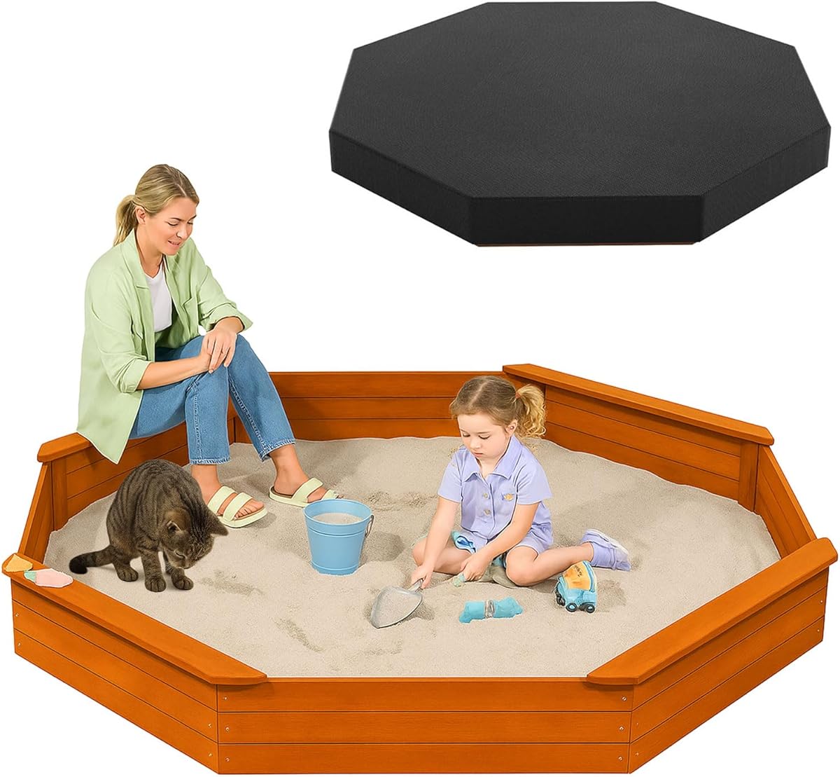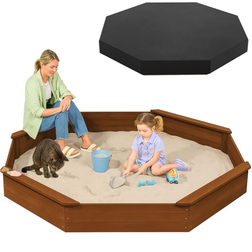 {"about_product": ["Spacious Octagon Design: Measuring 85\"L x 78\"W, this large octagonal sandbox offers plenty of room for kids to dig, build, and play together, making it ideal for social, creative fun.", "Includes 4 Benches: Seats 8 Kids or Adults – Each integrated bench supports up to 220 lbs, offering comfortable seating for children and parents during backyard fun.", "Durable Fir Wood Frame: Crafted from weather-resistant fir wood with a child-safe, non-toxic finish for long-lasting durability through sun, rain, and rough play.", "All-Weather Cover & Bottom Liner: Comes with a waterproof 420D Oxford fabric cover and a breathable liner that prevents weed growth while allowing for proper drainage and ventilation.", "Quick Assembly: Easy-to-follow instructions make setup simple. Fill with up to 1000 lbs of sand (not included) to create an engaging, outdoor play space for years to come."], "product_description": null, "product_information": {"ASIN": "B0F8983QG7", "Item Weight": "31.9 pounds", "Manufacturer": "AMZOSS", "Assembly required": "Yes", "Best Sellers Rank": "#75,554 in Toys & Games (See Top 100 in Toys & Games) #72 in Sandboxes", "Item model number": "66434101-GOLDENRED", "Batteries required": "No", "Product Dimensions": "84 x 78 x 9 inches", "Maximum recommended load": "1000 Pounds"}, "product_details": {}}
