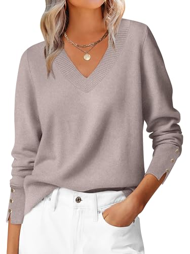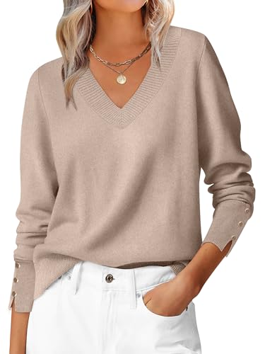 {"about_product": ["Fit Type - Regular. Size - S=US(4-6), M=US(8-10), L=US(12-14), XL=US(16-18), XXL=US(20-22). More details in rich description.", "Material - 20%Acrylic + 12%Nylon + 30%PBT + 38%Polyester. Stretch - Medium, Thickness - Medium, Softness - Medium.", "Washing - Machine wash cold gently with like colors. Do not bleach, drying and iron.", "Features - Women's Casual sweaters, designed with subtle ribbing buttons cuffs, v neck, long sleeve, knitted, This women's sweater tops perfect for daily wear, work, office, business casual.", "Color Notice - Actual colors may slightly vary due to lighting conditions and screen display differences. For accurate color reference, we recommend viewing under natural daylight (D65 standard)."], "product_description": null, "product_information": {"ASIN": "B0F89YJTD1", "Department": "womens", "Customer Reviews": "4.4 4.4 out of 5 stars \n\n (315)", "Product Warranty": "For warranty information about this product, please click here", "Best Sellers Rank": "#4,487 in Clothing, Shoes & Jewelry (See Top 100 in Clothing, Shoes & Jewelry) #77 in Women's Pullover Sweaters", "Date First Available": "May 12, 2025"}, "product_details": {"Origin": "Imported", "Fabric type": "20%Acrylic + 12%Nylon + 30%PBT + 38%Polyester", "Closure type": "Pull On", "Care instructions": "Machine Wash"}}