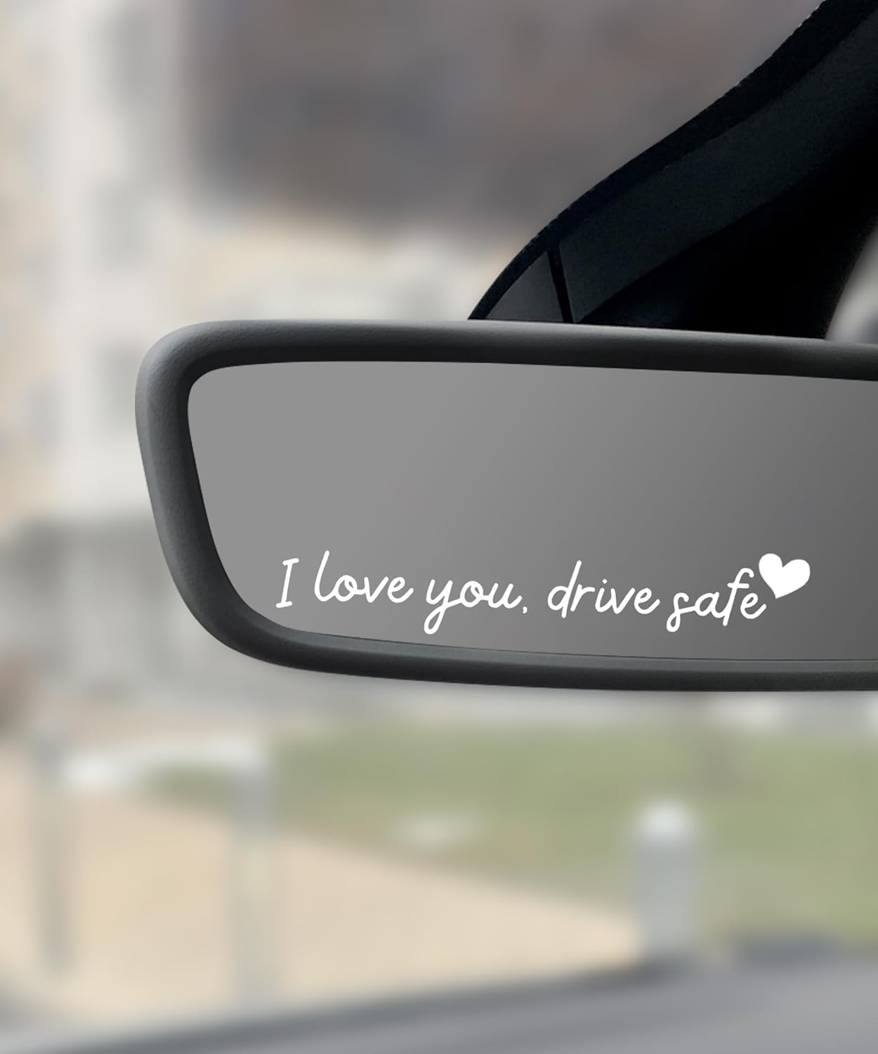 {"about_product": ["[Premium Material]: Our car stickers are made of high-quality materials that will not fade in the sun, will not peel off and fade and crack easily, and will be waterproof and durable, and will not leave any residue or traces.", "[Size]: Our rearview mirror decal length is 4 inches, ensuring a perfect fit without taking up too much space in the rearview mirror, perfect for women’s vehicle decals or cute car decorations, adding personality to any car interior.", "[Packaging List]: You will receive 4 car stickers, we offer a variety of colors and styles for you to choose from, you can match according to your preferences. They are also great gifts for family and friends.", "[Easy to Use]: Clean and dry the required surface first, gently scrape with a scraper or card, and then slowly tear off the film. Use a hair dryer to heat it properly before removing it, leaving no residue, but it cannot be reused.", "[Widely Used]: car stickers and decals are suitable for most cars on the market, suitable for any clean and smooth surface that can be attached to the car's rearview mirror, trunk, side or window to decorate your car."], "product_description": "-Size:4inch\n -Color:Black/White/Pink/Colorful\n \n You will receive\n -4x Car Stickers\n \n Our Product Advantages\n -Material: Our car stickers are made of high-quality materials that will not fade in the sun\n -Features: Not peel off and fade and crack easily, and will be waterproof \n -Applicable: Attached to the car's rearview mirror, trunk, side or window to decorate your car\n -size:Our rearview mirror decal length is 4 inches, ensuring a perfect fit without taking up too much space in the rearview mirror", "product_information": {"ASIN": "B0F8QD6W54", "Size": "I Love You Drive Safe", "Brand": "UNLRAE", "Color": "White", "Model": "2819TZ001", "Style": "Typographic", "Theme": "Love", "Pattern": "Letter Print", "Item Form": "Sheet", "Item Weight": "0.352 ounces", "Manufacturer": "UNLRAE", "Number of Items": "1", "Best Sellers Rank": "#1,641 in Automotive (See Top 100 in Automotive) #12 in Automotive Decals", "Cartoon Character": "I Love You Drive Safe", "Item model number": "2819TZ001", "Package Dimensions": "6.85 x 2.68 x 0.43 inches", "Date First Available": "May 15, 2025", "Indoor/Outdoor Usage": "Outdoor", "Manufacturer Part Number": "2819TZ001", "Recommended Uses For Product": "Car"}, "product_details": {"Brand": "UNLRAE", "Color": "White", "Style": "Typographic", "Theme": "Love", "Pattern": "Letter Print", "Material": "Vinyl", "Item Form": "Sheet", "Cartoon Character": "I Love You Drive Safe", "Surface Recommendation": "Glass", "Recommended Uses For Product": "Car"}}