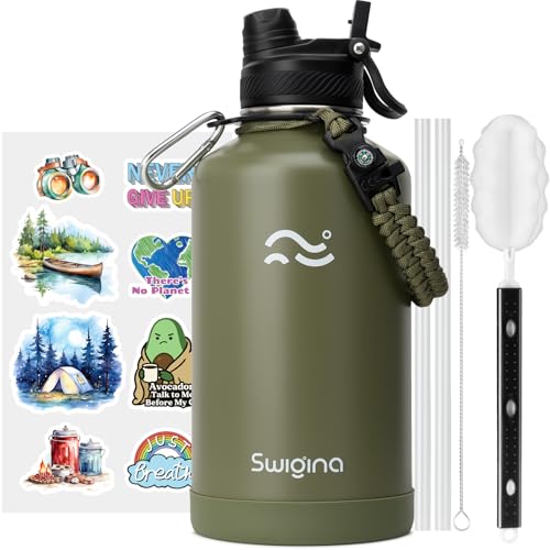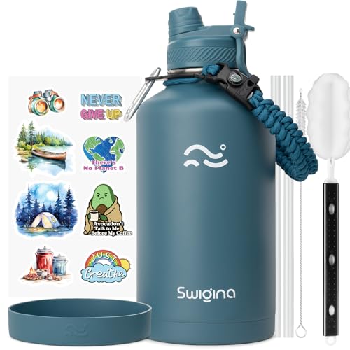 {"about_product": ["✅ 2-in-1 Interchangeable Lids - Instantly switch between straw sipping (ideal for gym or driving) and wide mouth drinking (perfect for coffee/tea) without buying extra accessories.", "✅ EXTREME TEMPERATURE CONTROL: Keeps drinks icy cold for 36hrs & steaming hot for 18hrs (verified by lab test) with double-walled vacuum insulation.", "✅ IMPACT-RESISTANT SILICONE ARMOR: Thick 3mm shock-absorbing sleeve protects from drops + non-slip grip (SAVE $50/yr on replacing cracked cups!).", "✅ EXPRESS YOUR STYLE: Comes with waterproof vinyl stickers (NO residue when removed) - customize your bottle to match your mood or outfit.", "✅ ZERO LEAK GUARANTEE: Carabiner-lock lid mechanism + food-grade 18/8 stainless steel."], "product_description": null, "product_information": {"ASIN": "B0F9FV6GJJ", "Brand": "Swigina", "Color": "Cyan", "Cap Type": "2-IN-1 Lid", "Capacity": "1.5 Pounds", "Material": "Stainless Steel", "With Lid": "Yes", "Model Name": "Water Bottle", "Item Weight": "1.06 pounds", "Manufacturer": "Swigina", "Base Diameter": "3 Inches", "Number of Items": "1", "Special Feature": "2-IN-1 LID, Cold for 48hrs & Hot for 24hrs, Impact-resistant Silicone Boot", "Best Sellers Rank": "#945 in Kitchen & Dining (See Top 100 in Kitchen & Dining) #34 in Insulated Bottles", "Item model number": "WB05", "Product Dimensions": "3\"W x 10.9\"H", "Included Components": "DIY Stickers, Silicone Boot, Spare straw", "Date First Available": "May 21, 2025", "Age Range (Description)": "All Ages", "Product Care Instructions": "Hand Wash Only"}, "product_details": {"Brand": "Swigina", "Color": "Cyan", "Capacity": "1.5 Pounds", "Special Feature": "2-IN-1 LID, Cold for 48hrs & Hot for 24hrs, Impact-resistant Silicone Boot", "Age Range (Description)": "All Ages"}}