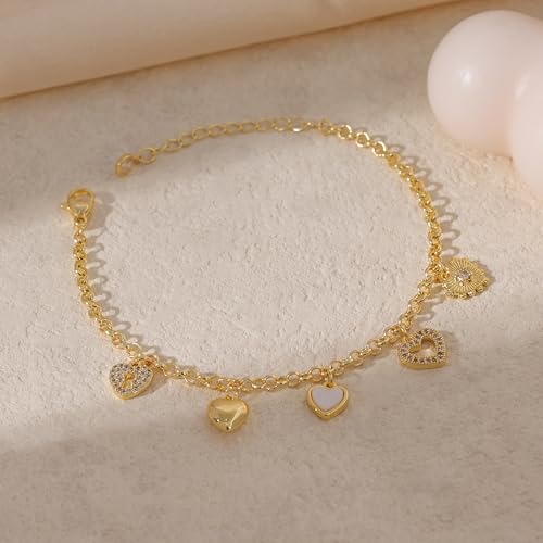 {"about_product": ["Design:The charm bracelet features a heart-shaped pendant with hollow pattern design. The surface has a polished finish, making it suitable for different occasion", "Size:The heart bracelet chain measures 6.1 inches (15.5 cm) with a 1.6 inches (4 cm) extender. Adjustable length ranges from 6.1-7.7 inches (15.5-19.5 cm).", "Material:The bracelet is crafted with 14k gold-plated metal. Lead-free and nickel-free.this hypoallergenic charm bracelet is lightweight and everyday wear", "Versatile Occasion:Suitable for various occasions including birthdays, parties and celebrations. Can be given as a gift for Mother's Day, Christmas, and other special occasions.", "Make their heart skip a beat with our Heart Charm Bracelet"], "product_description": "", "product_information": {"ASIN": "B0FKGTFPTW", "Department": "womens", "Customer Reviews": "4.2 4.2 out of 5 stars \n\n (42)", "Product Warranty": "For warranty information about this product, please click here", "Best Sellers Rank": "#64,746 in Clothing, Shoes & Jewelry (See Top 100 in Clothing, Shoes & Jewelry) #254 in Women's Link Bracelets", "Date First Available": "July 30, 2025"}, "product_details": {"Gem type": "No gemstone", "Material": "Brass", "Chain type": "Chain", "Metal type": "Brass", "Item type name": "Bracelet"}}