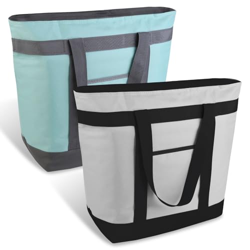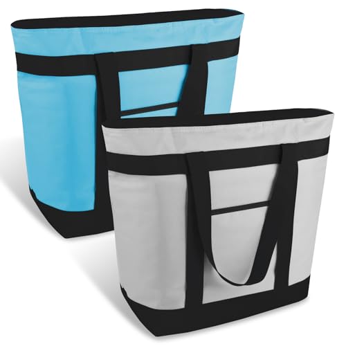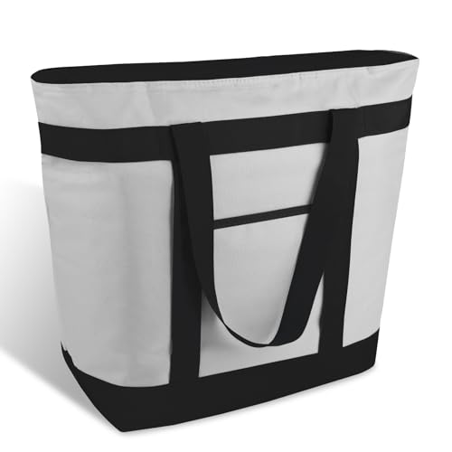 mosago Reusable Grocery Tote Bags, Insulated Cooler Shopping Bag for Women/Men, Pizza/Food Delivery Bags to Keep Food Hot/Cold for Uber Eats/Doordash/Grubub, Cooler Bag for Travel/Beach/Picnic, Grey