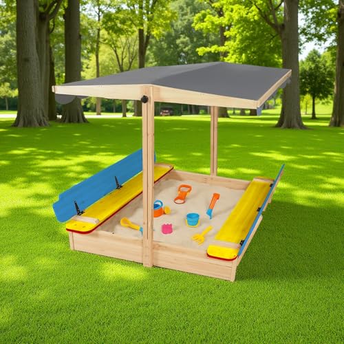 {"about_product": ["Spacious Design & Effortless Assembly: With 48\" x 48\" x 48\" dimensions, this sandbox with lid provides ample room for social play and creative exploration. Featuring pre-drilled holes and intuitive design, assembly takes under 15 minutes", "Adjustable Retractable Canopy: Equipped with a weather-resistant, retractable roof, this sand pit offers customizable sun protection. Easily adjust height and angle for optimal shade, while the smooth surface allows quick cleaning after rain", "Premium Fir Wood & Smart Bottomless Design: Crafted from solid fir wood with non-toxic, water-based paint, our spacious wooden sandbox ensures a safe play environment for children. The open-bottom construction enables superior drainage, ventilation, and adjustable sand depth—promoting hygiene and reducing maintenance", "Dual Foldable Bench Seats with Lid Conversion:Two sturdy, foldable benches (with backrests) comfortably seat 4 kids or 2 adults. Ingeniously convertible into a protective lid, they maintain sand cleanliness —maximizing space efficiency", "Versatile Outdoor Fun for Ages 3-8+: Ideal for backyards, gardens, patios, or beaches, this outdoor sandbox with cover delivers imaginative play and motor-skill development for toddlers to young kids. As a cherished childhood gift, it sparks joy while withstanding years of active use"], "product_description": null, "product_information": {"ASIN": "B0FC28LW95", "Item Weight": "35 pounds", "Manufacturer": "GARWOOD", "Best Sellers Rank": "#92,743 in Toys & Games (See Top 100 in Toys & Games) #89 in Sandboxes", "Product Dimensions": "48 x 48 x 8.3 inches", "Manufacturer recommended age": "3 months and up"}, "product_details": {}}