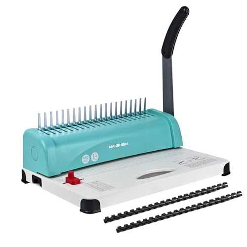 {"about_product": ["【Easy to Operate】Two simple steps for our binding machine! With integrated punching and binding, align papers, press the punch lever fully down(no pause to avoid jams), insert binding comb to complete.", "【Lightweight and Sturdy】The Comb Binding Machine uses a cast iron base (powder coated) to ensure stable punching without lifting, the metal structure is durable and the ABS shell is wear-resistant, with drawer-type paper waste box. Key Tips: The knife is pre-lubricated to prevent rust. Clean the blade with test paper before binding important documents. Clean paper scraps in the hole punch with a utility knife before use.", "【Precise Hole Punching Alignment】 Our binding machine is equipped with a positioning knob and adjustable side guides to accurately fit Letter/A4/A5 paper. It supports 3-5mm margin customization to easily create professional binding effects.", "【Humanized Design】The comb binder features an ergonomic curved handle and sharp cutting blade, which is labor-saving and efficient. It is suitable for A5 (15 holes), Letter (19 holes), A4 (21 holes) and small-sized paper. It is stable and durable, and can easily achieve professional binding effects.", "【Cost-effective】The binder comes standard with 100pcs of 1/4-inch 21-ring black PVC comb binding strips, no additional purchase is required. Metal housing + non-slip base + high-leverage punch arm, can punch 15 sheets of 80g paper (about 20 pounds) at a time manually, and 2-inch comb binding can hold up to 450 pages."], "product_description": null, "product_information": {"ASIN": "B0FC5TNKB6", "Brand": "MakShein", "Color": "Green-a", "Item Weight": "6.28 pounds", "Manufacturer": "MakShein", "Best Sellers Rank": "#78,665 in Office Products (See Top 100 in Office Products) #53 in Binding Machines", "Package Dimensions": "17.24 x 12.71 x 7.52 inches", "Date First Available": "June 6, 2025", "Manufacturer Part Number": "MK-15A"}, "product_details": {}}