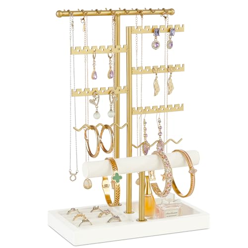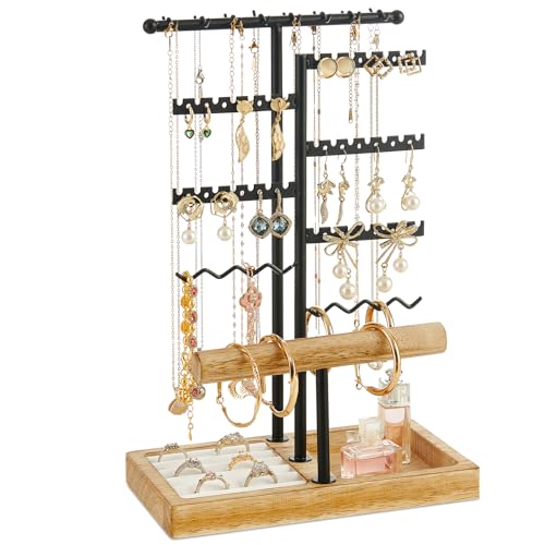 {"about_product": ["Multi-Functional Jewelry Organizer - This 3-tier jewelry stand combines a necklace rack, earring holder, bracelet holder, and ring display, providing a comprehensive solution for all your jewelry storage needs", "Large Storage Capacity - With the ability to hang up to 16 necklaces, 65 earrings hooks, store 20 bracelets, and hold 15 rings, this jewelry organizer ensures you have ample space for your entire collection", "Compact and Space-Saving Design - Designed to fit in any small space, this jewelry holder is great for bedrooms, closets, or even dorm rooms, a beautiful decorative piece for your room", "Tangle-Free Layered Storage - The 3-tier jewelry organizer design of this jewelry rack allows for organized, layered storage, keeping your jewelry separated and tangle-free, so you can easily access your favorite pieces whenever you need them", "Gift Ideas -This 3-tier jewelry organizer makes a thoughtful and practical gift for any occasion, ideas for daughters, friends, or wives. Whether it's a Christmas gifts, a birthday gifts, or a back-to-school gifts", "Easy Assembly, Sturdy Construction - Made of rubberwood and metal, this jewelry organizer and storage is easy to assemble and can be quickly installed. Its sturdy construction prevents shaking and deformation"], "product_description": null, "product_information": {"ASIN": "B0FCFLTFCV", "Brand": "Poyilooo", "Color": "Carbonized Brown", "Shape": "T-Shape", "Style": "Rustic", "Material": "Rubberwood, Metal", "Item Weight": "1.15 pounds", "Part Number": "Jewelry Stand 15", "Manufacturer": "Poyilooo", "Mounting Type": "Table Top", "Special Feature": "Lightweight", "Target Audience": "Women", "Special Features": "Lightweight", "Best Sellers Rank": "#29,462 in Clothing, Shoes & Jewelry (See Top 100 in Clothing, Shoes & Jewelry) #37 in Jewelry Towers", "Item model number": "Jewelry Stand 15", "Number of Drawers": "3", "Product Dimensions": "4.33\"D x 7.87\"W x 12\"H", "Batteries Included?": "No", "Batteries Required?": "No", "Included Components": "Jewelry Stand", "Date First Available": "August 24, 2025", "Jewelry Storage Type": "Jewelry Stand", "Number of Compartments": "3", "Recommended Uses For Product": "Bangle, Bracelet, Earring, Necklace, Ring, Watch"}, "product_details": {"Brand": "Poyilooo", "Color": "Carbonized Brown", "Shape": "T-Shape", "Style": "Rustic", "Material": "Rubberwood, Metal", "Special Feature": "Lightweight", "Target Audience": "Women", "Number of Drawers": "3", "Product Dimensions": "4.33"D x 7.87"W x 12"H", "Recommended Uses For Product": "Bangle, Bracelet, Earring, Necklace, Ring, Watch"}}