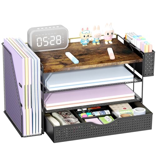 {"about_product": ["【Space Saving】: The compact design of this wood desk organizer maximizes vertical space while keeping all office supplies within reach, making your workspace more organized.", "【Improve Work Efficiency】: This pen organizer contains 4 trays, 1 magazine rack, 1 pen holder, and 1 sliding drawer, which can help you quickly identify the contents of each compartment, helping to keep papers, notebooks, and office supplies neatly organized and easily accessible., so that you can stay busy and creative all day long.", "【High-quality Materials】: This workspace organizer is made of high-quality wood and solid steel and high-quality plastic for better stability and durability. The outer layer is epoxy-coated, rust-proof and very durable, ensuring a long service life. Its simple design can be perfectly integrated with any decorative style", "【Easy to Assemble】: Detailed instructions and matching assembly tools ensure a fast and efficient assembly process. It is super easy to assemble without worrying about any problems!", "【Happy Shopping】: We offer a 100-day return policy. If you have any questions, please feel free to contact us, we will help you within 24 hours."], "product_description": null, "product_information": {"ASIN": "B0FCMCNS7D", "Brand": "gianotter", "Color": "Wood", "Style": "Modern", "Usage": "Desk Organizer", "Finish": "Powder Coated", "Material": "Alloy Steel, Plastic, Wood", "Room Type": "Home Office", "Shelf Type": "Tiered Shelf", "Finish Type": "Powder Coated", "Item Weight": "4.4 pounds", "Part Number": "4TW", "Manufacturer": "gianotter", "Mounting Type": "Tabletop", "Special Feature": "Rust Resistant", "Special Features": "Rust Resistant", "Assembly Required": "Yes", "Best Sellers Rank": "#2,133 in Office Products (See Top 100 in Office Products) #5 in Letter Trays & Stacking Supports", "Item model number": "4TW", "Number of Shelves": "4", "Product Dimensions": "9.25\"D x 13.2\"W x 9.4\"H", "Batteries Required?": "No", "Included Components": "4-Tier Paper Organizer, Pen Holder+ File Holder+ Drawer", "Date First Available": "July 27, 2025", "Item Package Quantity": "1"}, "product_details": {"Color": "Wood", "Material": "Alloy Steel, Plastic, Wood", "Shelf Type": "Tiered Shelf", "Special Feature": "Rust Resistant", "Product Dimensions": "9.25"D x 13.2"W x 9.4"H"}}
