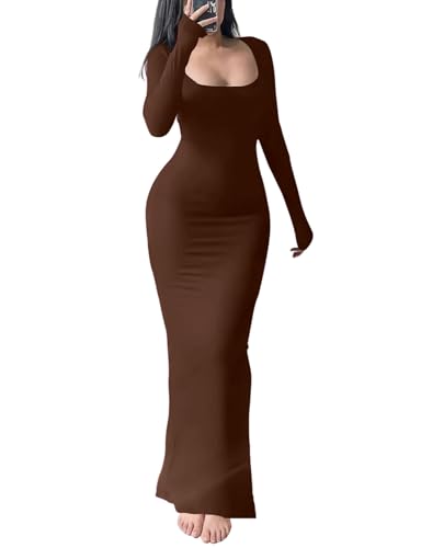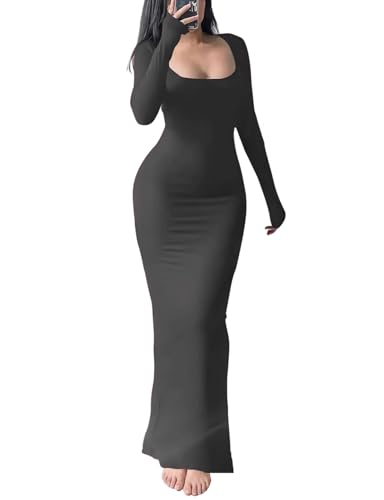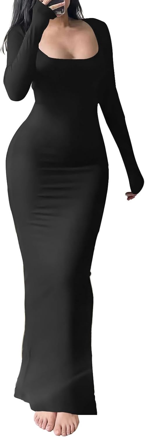 {"about_product": ["Notice:Due to the tight and slim fit design, those with a larger bust may find it a bit snug. It's recommended to size up!!", "Comfy Material:The square neck maxi dress is made of super soft,breathable, and comfortable fabric. It is highly stretchy and lightweight, better embracing your curves for every body type.", "Fashion Design:This soft lounge dress features a classic low square neck with flared bottom that shows off the sexy collarbone and neck, the cinched waist highlights your curves, and looking classy at the same time.", "Match:This cute and trendy maxi dress can be paird with statement jewelry, handbags, high heels, sandals, knee-high boots, or ankle boots. In fall or winter, it perfectly matches jackets or coats. Your unique sense of style is sure to earn compliments from friends.", "Occasion:The elegant long dress for women is perfect for various occasions, including daily wear, casual outings, dates, work, holiday shopping,beach trips, Halloween, and Christmas,cocktails, baby shower, nights out, clubs, formal dinners, and special events.You are sure to be the star of the evening, shining like a diamond."], "product_description": "", "product_information": {"ASIN": "B0FYFKCM6X", "Department": "womens", "Customer Reviews": "3.9 3.9 out of 5 stars \n\n (69)", "Best Sellers Rank": "#14,968 in Clothing, Shoes & Jewelry (See Top 100 in Clothing, Shoes & Jewelry) #36 in Women's Club & Night Out Dresses", "Date First Available": "June 13, 2025"}, "product_details": {"Origin": "Imported", "Fabric type": "95% Polyester, 5% Elastane", "Closure type": "Pull On", "Care instructions": "Machine Wash"}}