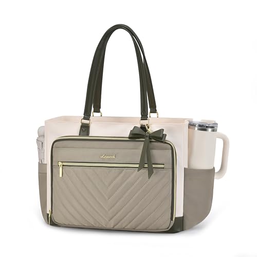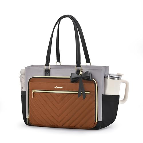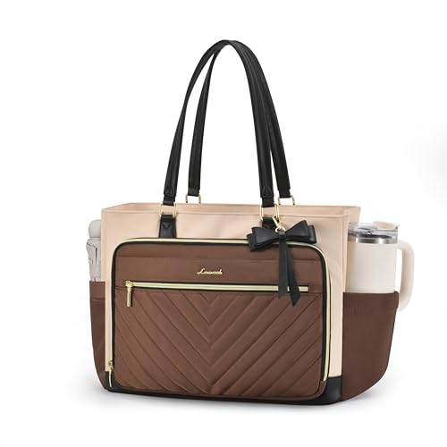 {"about_product": ["Multi-Pocket Organization: A teacher’s must-have, this versatile work tote bag keeps all your essentials sorted and accessible with 4 spacious front zipper pockets and multiple small slots. Perfectly sized for grade books, pens, and classroom supplies, it also transitions effortlessly into a nurse bags for work (think stethoscopes and thermometer) or a spacious diaper bag for moms carrying bottles, wipes, and snacks.", "With Large Cup Holder: Designed for your large water bottle, our work bags for women features an elastic side pocket that holds up to 40oz, secured with an elastic metal buckle for added stability. The innovative design allows the cup's handle to fit perfectly, ensuring easy access. This practical side pocket perfectly suits teachers and nurses commuting daily, blending professional style with convenient functionality.", "Large capacity & Padded Laptop Compartment: This versatile quilted tote bag features a padded laptop compartment for superior protection, making it the perfect laptop tote bag with zipper for women professionals. The spacious main compartment with multiple pockets organizes teacher essentials or nurse supplies effortlessly. Thoughtfully designed and smart compartments, it transitions seamlessly from a polished work tote to a practical diaper bag for new parents.", "Perfect for Various Scenarios: This laptop bag for women features a luggage sleeve for hands-free convenience, perfect for work, travel & daily use. Sturdy multi-compartments secure laptops, teacher supplies or everything you take. The polished design works as a stylish work tote for commutes or weekends, and easily converts to a teacher bag, nurse bag, computer bags for laptops for women, purses for women, college bag, mom bag, travel tote bags for women, everything tote bag.", "Stylish Tote Bag for Women & Gifting: This shoulder bag features extended PU leather handles for comfortable hand-carrying and a detachable bow for DIY styling. Premium hardware and smooth zippers ensure durability. Ideal as teacher gifts, equally perfect for nurses, college students, busy moms, and professionals, it offers organized compartments for laptops and essentials, perfect for work or leisure."], "product_description": null, "product_information": {"ASIN": "B0FDBFTNP9", "Brand": "LOVEVOOK", "Color": "Black-beige-brown", "Department": "Women", "Item Weight": "2.07 pounds", "Best Sellers Rank": "#5 in Laptop Messenger & Shoulder Bags", "Package Dimensions": "14.06 x 10.24 x 3.9 inches", "Date First Available": "June 16, 2025", "Is Discontinued By Manufacturer": "No"}, "product_details": {}}