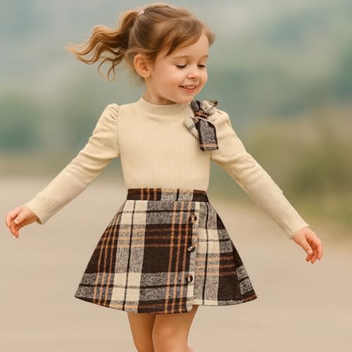 {"about_product": ["MATERIAL: Toddler girl shirt sweater top is made of cotton and polyester, bottom skirt is made of cotton blend and polyester, soft, breathble, and comfortable, sweet toddler baby girl 2 piece skirt set, cute baby girl clothes.", "Design: Kids Little girl spring fall winter skirt set,knitted cotton long sleeve solid color top, button mini skirt with elastic waist , winter fashion warm toddler girls clothes outfits.", "AGE: Toddler girl winter clothes suitable for baby girl clothes 2t, 3t toddler girl fall clothes,4t toddler girl outfits, 5t girl clothes, 6y girl clothes, toddler girl fall clothes, baby girl winter clothes, toddler girl winter outfit.", "OCCASION: The toddler dress suit is suitable for leisure daily wear, such as shopping, party, club, birthday, holiday, travel, photo shoot, Halloween, Thanksgiving, Christmas gift, New year, funeral, or home, formal accation etc.", "Package included: 1 x Long Sleeve Sweatshirt Tops +1 x Plaid Mini Skirt."], "product_description": null, "product_information": {"ASIN": "B0FF3W345P", "Department": "baby-girls", "Customer Reviews": "4.6 4.6 out of 5 stars \n\n (222)", "Best Sellers Rank": "#3,120 in Clothing, Shoes & Jewelry (See Top 100 in Clothing, Shoes & Jewelry) #1 in Baby Girls' Skirt Sets", "Package Dimensions": "3.3 x 3.3 x 0.4 inches; 4.23 ounces", "Date First Available": "June 21, 2025"}, "product_details": {"Origin": "Imported", "Fabric type": "Cotton blend", "Care instructions": "Machine Wash"}}