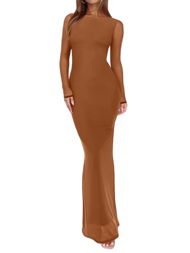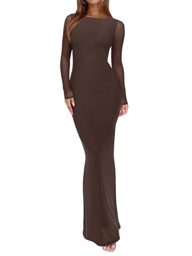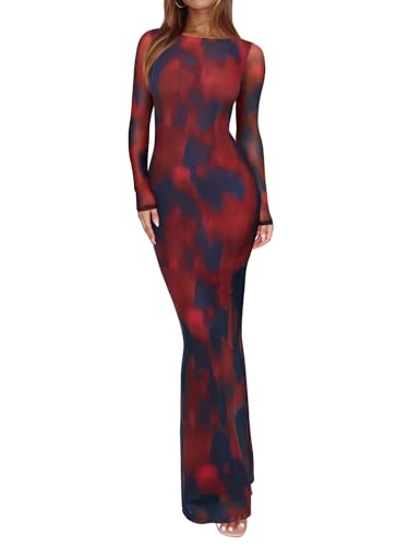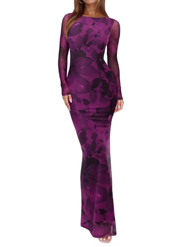 {"about_product": ["?Size: XS=US(2), S=US(4-6), M=US(8-10), L=US(12-14), XL=US(16-18). Model info -Height: 5'7 (170cm, ankle length), Weight: 130 lbs, Bust: 33.5'', Waist: 24.5'', Hips: 37.0'', Wearing S. If you don't like ‘too tight' feeling, we recommend regular; or size up(if you have bigger busts or hips). Please feel free to contact us if you have any issues. We will provide you with a satisfactory solution within 48 hours.", "?Fabric: This wedding guest dress features a floral sheer mesh overlay with a soft opaque lining for comfort and coverage, while the unlined mesh long sleeve add a delicate, elegant feel. The stretchy, skin-friendly fabric provides a flattering fit, so it’s easy to move and dance in. No zippers.", "?Spring Dresses for Women 2026: This mesh maxi dress is slim cut design with flared bottom that shows the hourglass body curves for a confident mermaid look. Holds the curves in and shows off the booty! The vibrant purple and green floral print is eye-catching and gorgeous in person. Classy and sleek.", "?Sexy, Simple, Stunning: These Club & Night Out dresses for women perfectly matched with a variety of shoes. Throw on flats for a casual day or dress it up with heels for dare night. Pair it with nude or metallic heels, a clutch, and simple jewelry to complete the look. You can also add a shawl or jacket for extra warmth during spring cooler evenings.", "?Perfect for Spring Occasions: Best formal dresses for women, wedding guest dress, cocktail dresses for women, vacation outfits for women, homecoming dresses, birthday dresses for women, party dresses for women, prom dress, graduation dress and so on. Making you feel confident and glamorous. Highly recommend!"], "product_description": null, "product_information": {"ASIN": "B0FF9YYW7C", "Department": "womens", "Customer Reviews": "4.5 4.5 out of 5 stars \n\n (180)", "Product Warranty": "For warranty information about this product, please click here", "Best Sellers Rank": "#10,363 in Clothing, Shoes & Jewelry (See Top 100 in Clothing, Shoes & Jewelry) #1,209 in Women's Casual Dresses", "Date First Available": "June 24, 2025"}, "product_details": {"Origin": "Imported", "Neck style": "Crew Neck", "Fabric type": "Inner: 75%Polyester+25%Spandex, Mesh: 90% Nylon+10% Spandex", "Care instructions": "Machine Wash"}}