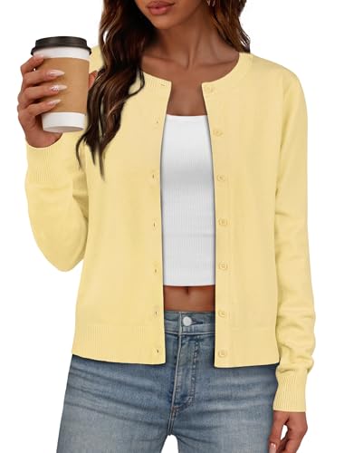 {"about_product": ["Features: Relaxed fit, classic cut, crew-neckline, long-sleeve style, rib detail at cuffs and hem, button-front closures, solid plain color.", "Premium fabric: This lightweight cardigan is made of 50% viscose, 28% polyester, and 22% nylon. It is skin-friendly, soft, and comfortable, perfect for layering up or down no matter the season", "Match style: A classic layering piece, perfect for both a polished and casual look. It can be easily paired with skinny tops, shorts, jeans, dresses, and skirts for early fall fashion", "Occasions: This womens cardigan sweaters with a fitted design that flatters your figure. Perfect for daily casual wear, formal occasions, travel, holiday, party, shopping, dating, school, vacation, etc", "Wash Instruction: Hand/Machine washable with cold water recommended, do not bleach."], "product_description": null, "product_information": {"ASIN": "B0FFGWV6W1", "Department": "womens", "Customer Reviews": "4.6 4.6 out of 5 stars \n\n (86)", "Best Sellers Rank": "#8,618 in Clothing, Shoes & Jewelry (See Top 100 in Clothing, Shoes & Jewelry) #65 in Women's Cardigans", "Date First Available": "August 18, 2025"}, "product_details": {"Origin": "Imported", "Fabric type": "50% Viscose, 28% Polyester, 22% Nylon", "Fur description": "2025 Early fall fashion cardigan sweaters for women", "Care instructions": "Machine Wash"}}