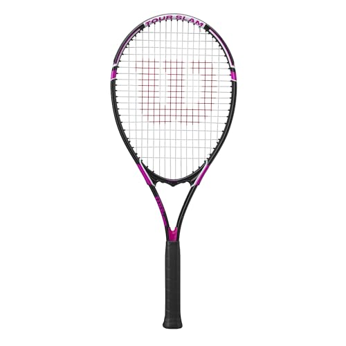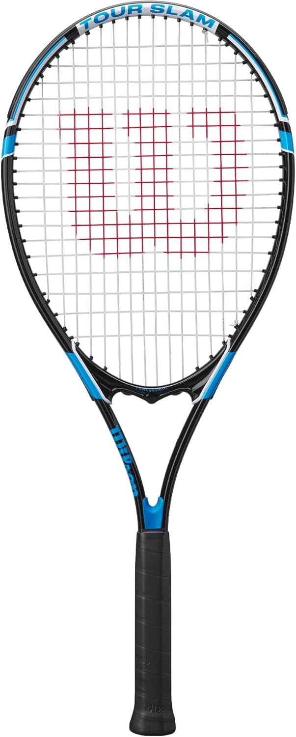 {"about_product": ["Wilson Tour Slam Adult Tennis Racquet Black/Blue - Grip Size 2 - 4 1/4\"", "Material: Adult Air Lite Alloy", "Head: 106 sq in", "String Pattern: 16 x 20"], "product_description": "", "product_information": {"UPC": "097512928960", "ASIN": "B0FFNYJQ33", "Size": "Head size: 106 sq\"", "Brand": "WILSON", "Color": "Black/Blue", "Sport": "Tennis", "Material": "Metal", "Grip Size": "4 1/4 inches", "Brand Name": "WILSON", "Model Name": "Tour Slam Adult Tennis Racquets", "Item Weight": "0.64 Kilograms", "Skill Level": "Beginner", "Manufacturer": "WILSON", "Frame Material": "Alloy Steel", "Package Weight": "0.64 Kilograms", "Shaft Material": "Alloy Steel", "Suggested Users": "unisex-adult", "Best Sellers Rank": "#64,598 in Sports & Outdoors (See Top 100 in Sports & Outdoors) #74 in Tennis Rackets", "Included Components": "1 Racket", "Date First Available": "June 26, 2025", "Warranty Description": "1 Year Limited", "Age Range (Description)": "Adult", "Sport Racket String Installation": "Unstrung", "Item Package Dimensions L x W x H": "29 x 12.5 x 2.5 inches"}, "product_details": {"Size": "Head size: 106 sq"", "Brand": "WILSON", "Sport": "Tennis", "Material": "Metal", "Grip Size": "4 1/4 inches", "Item Weight": "0.64 Kilograms", "Skill Level": "Beginner", "Frame Material": "Alloy Steel", "Shaft Material": "Alloy Steel", "Age Range (Description)": "Adult"}}