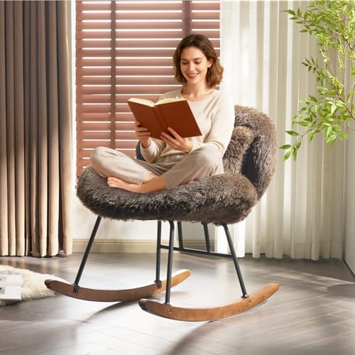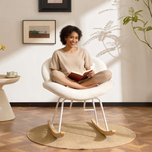 {"about_product": ["【25.6\" Wide & Elegant Curved Design】This nursing rocking chair features a 25.6\" wide seat and a beautifully designed curved backrest and seat surface, shaped like a charming eggshell for a cute and novel look. The unique curved contours provide a gentle, embracing support, while the extra-wide seat is spacious enough to accommodate cross-legged sitting. Whether for feeding, reading, or quiet relaxation, the generous width caters to diverse comfort needs—making it a versatile choice for anyone.", "【Plush Fabric Upholstery】Wrapping you in sumptuously soft teddy fleece and plush fabric, this rocking chair offers a haven of comfort. Crafted with breathable, skin-friendly materials, it feels gentle against delicate skin. The dense, fluffy texture mimics the coziness of an embrace, providing a warm, non-irritating surface perfect for late-night feeding or sleepy moments. It's like being wrapped in a cloud, adding elegance to any space.", "【Armless & 95°-115° Smooth-Rocking】Built with a durable metal and wood frame, this criss-cross chair combines stability and floor protection. With a robust weight capacity of 330 lbs, it safely accommodates various users. Equipped with cotton pads under the rockers, it glides smoothly without scratching floors. The sleek black metal and natural wood accents complement any decor, blending durability with a stylish look for daily use.", "【Sturdy & Floor-Friendly Frame】Built with a durable metal and wood frame, this cute vanity chair combines stability and floor protection! With a robust weight capacity of 330 lbs, it safely accommodates parents of various. Equipped with cotton pads under the rockers, it glides smoothly without scratching floors. The sleek black metal and natural wood accents complement any nursery decor, blending lasting durability with a pristine, stylish look that withstands daily use.", "【Soft Throw-out Pillow】This nursing chair comes with a removable pillow (10.6\"W x 4.3\"T x 16.1\"L) to elevate comfort. It supports the lower back during use, props up for ergonomic feeding angles, or provides security during rest. The plush yet firm filling molds to the body, while its cloud-like softness adds cozy support to every cuddle, storytime, or rest. Designed to ease your burden, it reduces lower back strain for a more relaxed and comfortable experience."], "product_description": null, "product_information": {"ASIN": "B0FG2JRHLY", "Size": "33.7 inches × 25.6 inches × 29.5 inches", "Brand": "VINGLI", "Color": "Teddy Fleece-white Cream", "Style": "Modern", "Pattern": "Solid", "Arm Style": "Armless", "Leg Style": "Curved Leg", "Room Type": "Bedroom, Living Room, Lounge Room, Nursing Room", "Back Style": "Continuous Back", "Seat Depth": "21.3 inches", "Unit Count": "1.0 Count", "Fabric Type": "Teddy Fleece", "Form Factor": "Upholstered", "Item Weight": "26.8 pounds", "Manufacturer": "VINGLI", "Fill Material": "Fiber batting/fill (polyester)", "Special Feature": "25.6\" Wide Seat, 330 lbs Weight Capacity, 95°-115° Reclining, Solid Wood Base, Throw-out Pillow", "Best Sellers Rank": "#342,862 in Home & Kitchen (See Top 100 in Home & Kitchen) #476 in Living Room Chairs", "Product Dimensions": "33.7\"D x 25.6\"W x 29.5\"H", "Date First Available": "June 30, 2025", "Indoor/Outdoor Usage": "Indoor", "Age Range (Description)": "Toddler", "Reclining Position Count": "2", "Assembly Instructions Description": "This product requires assembly. Please follow the included instructions for assembly."}, "product_details": {"Size": "33.7 inches × 25.6 inches × 29.5 inches", "Brand": "VINGLI", "Color": "Teddy Fleece-white Cream", "Material": "Teddy Fleece", "Product Dimensions": "33.7"D x 25.6"W x 29.5"H"}}