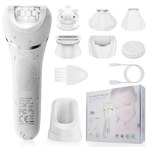 Epilator for Women, 7 in 1 Epilator Hair Removal for Women, Shaver, Bikini, Face Razor, Facial Brush, Face Massage and Body Exfoliator, Waterproof Painless Lady Shaver (White 227)