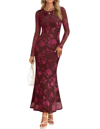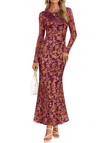 {"about_product": ["Size Guide: US SIZE, S=(US 4-6), M=(US 8-10), L=(US 12-14), XL=(US 16-18); This mesh dress is crafted from lightweight, high-quality, and skin-friendly materials, offering you a cozy wearing experience and making it an ideal choice for Fall 2025", "Features: This women's cocktail dress features floral velvet pattern, long sleeve, maxi length, elastic mesh fabric, round neck, with stretch lining no see-through, slim fit, ruffled hem, ruched side, wedding guest dress, maxi dresses, bodycon dresses for women, fall dresses for women 2025, tea party dresses for woman", "Designs: The appeal of this dress lies in its lovely floral velvet pattern. It features a bodycon fit and maxi length, effortlessly defining your curves and highlighting your figure. What sets it apart is the loose, flowy hem that exudes elegance and grace with every step", "Occasions: This elegant dress is ideal for tea party, daily, going out, date, club, graduation wear, holiday, street wear, shopping, or any activities. Wedding guest dresses for women, formal dresses for women, maxi dresses for women, club outfits for women, maxi dresses for women 2025, cocktail dresses for women", "Color Note and Washing Instruction: Actual colors may vary slightly due to differences in lighting conditions and screen displays. For an accurate color reference, we recommend viewing under natural daylight (International Standard D65). Hand or machine wash in cold water, do not bleach, and line dry"], "product_description": null, "product_information": {"ASIN": "B0FJ1YVFVZ", "Department": "womens", "Customer Reviews": "4.6 4.6 out of 5 stars \n\n (91)", "Product Warranty": "For warranty information about this product, please click here", "Best Sellers Rank": "#17,047 in Clothing, Shoes & Jewelry (See Top 100 in Clothing, Shoes & Jewelry) #12 in Women's Cocktail Dresses", "Item model number": "Fall Long Sleeve Maxi Dresses", "Date First Available": "August 20, 2025"}, "product_details": {"Origin": "Imported", "Fabric type": "93% Polyester, 7% Elastane, Lining: 95% Polyester, 5% Elastane", "Closure type": "Pull On", "Care instructions": "Machine Wash"}}