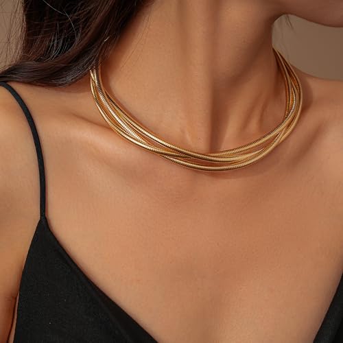 {"about_product": ["Unique Designs from ANDKISS: We have a unique design and development team, each product is poured into our designers' efforts to show the exquisite craftsmanship.", "Material and Size:The gold chunky necklace is made of hypoallergenic material and 18K gold plated to ensure the chain keeps tarnish-free, nickel free, lead-free, and hypoallergenic for a long time. Adjustable size: chain length is 13.42'' wth 2.75''.", "Perfect Gift:Used for perfect souvenir for Christmas, Anniversary, Birthday, Engagement, Valentine's Day, Mother's Day or just any occasion and are a classic souvenir for any Woman such as a Mother, Bride, Bridesmaids, Fiancée, Wife, or even a Grandmother.", "Layered Choker Design:This 3-layer-twisted gold snake chain necklace is retro and exotic, thick chain choker for women, very trendy.These gold necklaces stack are versatile and looks great with both casual and formal wear.", "Best service:We specialize in creating high-quality, high quality-price ratio, simple and trendy personalized jewelry that becomes part of your everyday life.Concerns regarding the order will be answered within 24 hours."], "product_description": "", "product_information": {"ASIN": "B0FN6YL37T", "Department": "womens", "Customer Reviews": "4.6 4.6 out of 5 stars \n\n (15)", "Best Sellers Rank": "#156,584 in Clothing, Shoes & Jewelry (See Top 100 in Clothing, Shoes & Jewelry) #355 in Women's Choker Necklaces", "Date First Available": "August 21, 2025"}, "product_details": {"Gem type": "No Gemstone", "Material": "Gold Plated", "Clasp type": "Lobster", "Metal type": "Copper", "Item type name": "Choker Necklaces"}}
