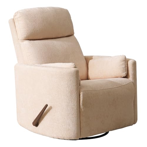 {"about_product": ["Massage and Heat: This massage rocking chair is equipped with an 8-point vibration massage system and 5 massage modes with 2 intensity levels, providing a customisable massage experience that targets your back and waist. The soothing lumbar heating function alleviates discomfort, stress and fatigue, providing full-body relaxation. The ergonomic design of this manual recliner chair ensures maximum comfort and convenience.", "Adjustable Headrest: This swivel rocker recliner chair for adults has an adjustable headrest. It can be manually adjusted to a variety of angles and its comfortable design helps to reduce pressure on the neck and shoulders. This makes it easy to adjust to a comfortable position, allowing you to watch TV or lean back without straining your neck or head. It provides personalised comfort.", "Oversized Swivel Rocker Recliner: Product size: 38.7\" (d) x 38.5\" (w) x 43\" (h), Seat size: 26\" (w) x 22\" (d), Weight capacity: 350 lbs. This glider recliner offers a reclining angle of 90°–145°. Simply press the button lightly to relax, read or sleep. It also features a 270° swivel and 30° rocking for maximum comfort and convenience, whether you're relaxing or soothing your baby to sleep. Metal base and solid wood construction for durability.", "Comfortable armrest design: This armchair comes with two removable pillows that are not only aesthetically pleasing, but also provide comfortable support for complete relaxation. You can cuddle up and sleep on it, and the two pillows can also be used as lumbar pillows while you read, providing extra support and comfort for your back, reducing muscle fatigue and ensuring a comfortable sitting experience. The modern 'arc' armrests are fashionable and stylish, and will keep your space looking warm and inviting.", "Easy Assembly & Service: You will receive two boxes, but they may not all arrive at the same time, so please wait until you have received all the packages before starting the installation, which can be easily assembled in a few minutes. We also offer a free replacement for any faulty, damaged or missing parts and a 2 year warranty. Please contact us if you have any questions about your purchase."], "product_description": null, "product_information": {"ASIN": "B0FJLXHQCN", "Size": "Swivel Rocker Recliner", "Brand": "Rhevoy", "Color": "White", "Shape": "L-Shape", "Style": "Modern", "Pattern": "Solid", "Tilting": "Yes", "Arm Style": "Arc", "Room Type": "Nursery", "Back Style": "Tufted Back", "Model Name": "MR020", "Seat Depth": "22 inches", "Form Factor": "Recliner", "Is Foldable": "No", "Item Weight": "100 pounds", "Seat Height": "20.4 Inches", "Seat Length": "26 Inches", "Manufacturer": "Rhevoy", "Cushion Style": "Padded", "Special Feature": "Arm Rest, Ergonomic, Head Support, Swivel", "Best Sellers Rank": "#184,593 in Home & Kitchen (See Top 100 in Home & Kitchen) #210 in Living Room Chairs", "Item model number": "MR020", "Product Dimensions": "38.7\"D x 38.5\"W x 43\"H", "Included Components": "Chair, 2 Pillows", "Date First Available": "July 23, 2025", "Indoor/Outdoor Usage": "Indoor", "Age Range (Description)": "Adult", "Furniture base movement": "Swivel", "Reclining Position Count": "90-145 degrees", "Recommended Uses For Product": "Nursery, Reading, TV Watching, Sleeping, Relaxing", "Included Throw Pillow Quantity": "2"}, "product_details": {"Size": "Swivel Rocker Recliner", "Brand": "Rhevoy", "Color": "White", "Material": "Metal", "Product Dimensions": "38.7"D x 38.5"W x 43"H"}}