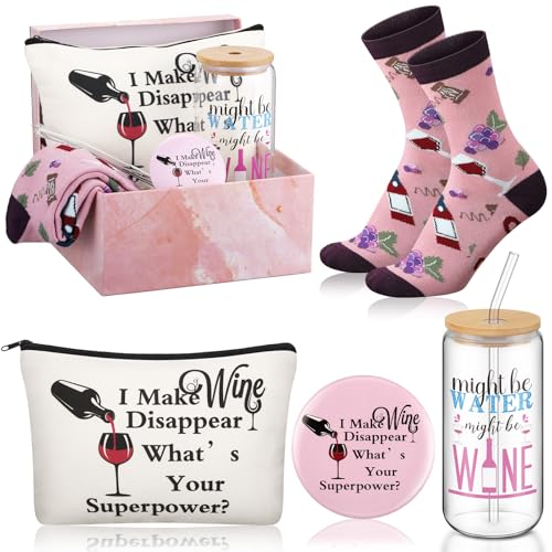 {"about_product": ["Wine Lover Gifts Bulk: the package includes 1 wine glass cup, 1 wine cosmetic bag, 1 wine pocket mirror, and a pair of wine sock, all package in a wine gift box, which will be cute gift set for wine lovers, they will be happy to receive the gifts", "Proper Size: the wine tumbler measures about 16 oz, the wine makeup bag is about 9.25 x 5.9 x 1.57 inch, the wine mirror is about 2.76 inch, and the wine gift box is about 7.84 x 7.84 x 3.74 inch, suitable size for you to use", "Quality Material: the wine glass cup is made of glass material, and the wine makeup bag is made of canvas, tear resistant and long lasting; The wine mirror is made of glass and tinplate, sturdy and useful, gift box is made of cardboard, and socks made of cotton, moisture absorption and sweat prevention", "Novelty Wine Design: our wine gifts for women are designed with wine theme, they are printed with cute wine patterns, vivid patterns add a lot of interest, which can nicely bring a strong holiday atmosphere", "Wine Gift Basket: add a splash of color to your life with these wine basket gift box; Ideal for wine lovers who want to express their individuality with lifestyle products, our wine lovers gifts for women are a great way to show others your taste"], "product_description": "Features: \nThese wine gifts are practical accessories designed for women, Whether you are traveling out of town or a short trip, they will be ideal supplies for you. \nYou can send them as ideal gift for women and girls at Christmas, birthday, Thanksgiving, Halloween, weddings, bachelorette parties, holiday weekends, anniversaries, holidays, etc. \n \nSpecifications: \nGlass cup: \nMaterial: glass \nSize: about 16 oz \n \nMakeup bag: \nMaterial: canvas \nSize: about 9.25 x 5.9 x 1.57 inch \n \nMirror: \nMaterial: glass and tinplate \nSize: about 2.76 inch \n \nSocks: \nMaterial: cotton \n \nGift box: \nMaterial: paper \nSize: about 7.87 x 7.87 x 3.74 inch \n \nPackage includes: \n1 x Glass cup \n1 x Makeup bag \n1 x Mirror \n1 Pair of socks \n1 x Gift box \n \nNotes: \nManual measurement, please allow slight errors in size. \nThe color may exist a slight difference due to different screen displays", "product_information": {"ASIN": "B0FJY3YP1G", "Department": "Unisex", "Item Weight": "1.21 pounds", "Manufacturer": "Kacctyen", "Best Sellers Rank": "#3,369 in Kitchen & Dining (See Top 100 in Kitchen & Dining) #110 in Tumblers & Water Glasses", "Item model number": "LNE-Kacctyen-1808", "Product Dimensions": "0.39 x 0.39 x 0.39 inches"}, "product_details": {}}