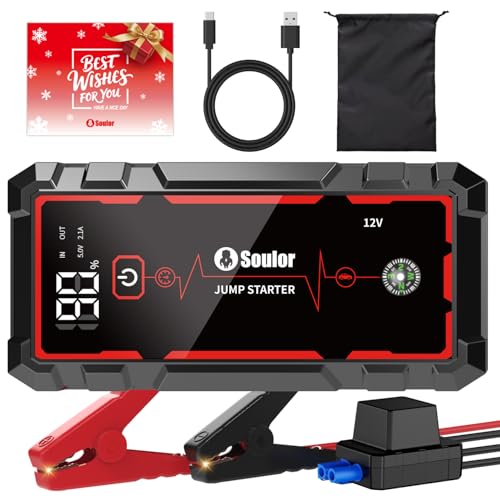 {"about_product": ["Start Dead Batteries: It can jump-start 12 V vehicles up to 40 times on a single charge and operates reliably in extreme temperatures from -4°F to 140°F, ensuring its performance is maintained when you need it most. The built-in Forced Start function ensures a successful ignition when the car battery is severely depleted. Stay prepared for any roadside emergency. Works on motorcycles, cars, trucks, pickups, etc", "7-in-1 Multi-Functional Jump Starter: More than just a portable car jump starter, it also acts as 3-mode LED torch (flashlight, strobe, SOS), a compass, a portable power bank and faster charging. This portable car battery charger very compact design, size is only the size of an ordinary power bank (Size: 7.28\"*3.46\"*1.77\" , Weight: 1.9 lbs). Adopting S-class intelligent ternary lithium battery, the jump starter power pack is more lightweight and portable", "Quickly Charger Power Bank: Dual USB-A ports (one fast-charge) and USB-C port for up to 50% faster charger that let you charge multiple devices simultaneously. This jumper box for car battery portable as a power bank to quickly charge your phone, tablet, and other devices, making it an essential companion for road trips and emergencies", "LCD Smart Display Screen: Features a 2.0-inch smart screen, this battery jumper starter portable can display the remaining power and output power in real time, to let you know everything at a glance. Stand by for 24 months — always ready to rescue you.Its compact and lightweight design allows for easy placement in your bag or car without taking up space", "3 in 1 Modes Flashlight: Equipped with a bright LED flashlight featuring 3 modes (Flashlight, Strobe Light, and SOS Light), coming traffic light up for 24 hours constantly, this car jumper starter portable offers versatility in emergency situations. It is equipped with a carrying case for easy storage in cars, or backpacks, this compact jump starter brings more convenience and peace of mind to your trip. It easy to carry or use during roadside repairs, night-time inspections, camping, or emergencies", "14 In 1 Intelligent Safety Protections: This car battery jump starter portable has 14 integrated protections without worrying about incorrect connections or sparks even if you're a novice. Perfect for emergencies, professional car work, and high-voltage maintenance, offering peace of mind and added protection.Ensure your trip is safe and smooth", "Full Package and Service: 1*Jump Starter, 1* Smart Jumper Cables, 1*USB-A to USB-C Cable, 1* User Manual, 1* Storage Bag. Backed by a 24-month service and 24 hours and 7 days customer support for your peace of mind.", "Note: (1) Before the first charge, please fully discharge the device. (2) It is recommended to jump start only when the battery charge is above 75% to ensure reliable and successful ignition.(3)Advice to charge the device per 3 months to keep the battery in good condition."], "product_description": null, "product_information": {"ASIN": "B0FLD5G3YN", "Brand": "Soulor", "Model": "CY20", "Amperage": "5000 Amps", "Batteries": "1 Lithium Polymer batteries required. (included)", "Item Weight": "1.57 pounds", "Manufacturer": "Guangdong Chu Yuan Zhi Jia Technology Co.,Ltd", "Best Sellers Rank": "#142 in Automotive (See Top 100 in Automotive) #10 in Jump Starters #68 in Automotive Replacement Batteries & Accessories", "Item model number": "CY20", "Product Dimensions": "8.9\"D x 5.03\"W x 3.86\"H", "Automotive Fit Type": "Universal Fit", "Peak Output Current": "5000 Amps", "Date First Available": "September 18, 2025", "Manufacturer Part Number": "CY20"}, "product_details": {"Brand": "Soulor", "Voltage": "12 Volts", "Product Dimensions": "8.9"D x 5.03"W x 3.86"H", "Vehicle Service Type": "All of the above", "Battery Cell Composition": "Lithium Ion"}}