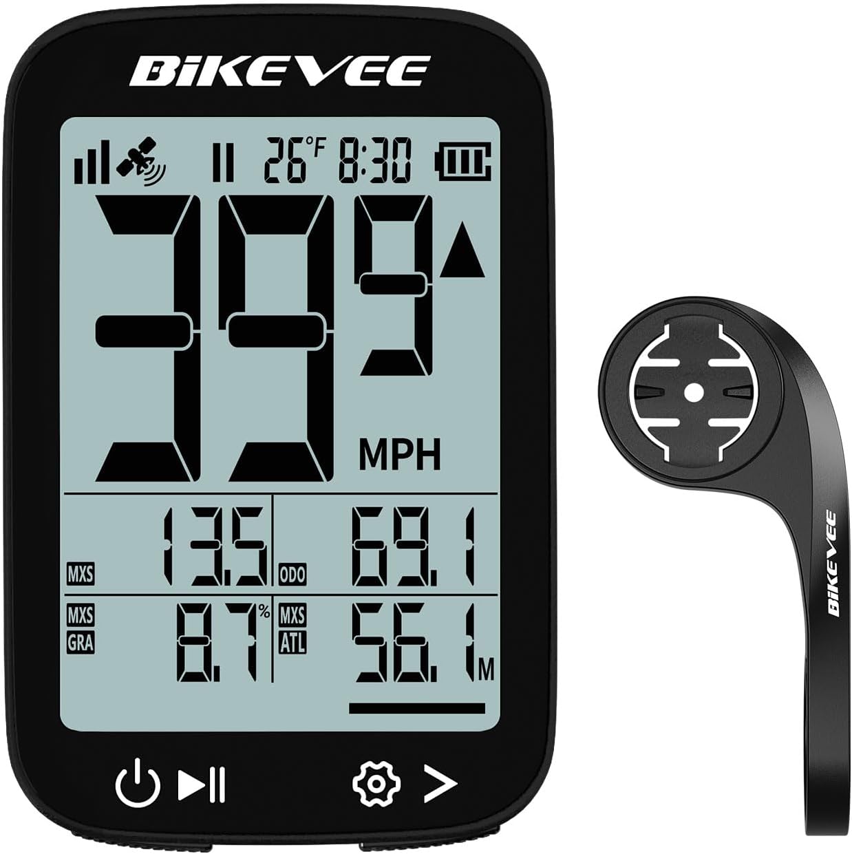 {"about_product": ["28H Cordless Battery Life: Equipped with a 650mAh rechargeable battery, the Bikevee GPS Bike Computer delivers up to 28 hours of continuous use, perfect for long rides or multi-day cycling adventures", "Clear 2.4\" LCD Display with Auto Backlight: Easily view speed, distance, and ride stats on a bright 2.4\" screen. Automatic backlight ensures visibility day or night without manual operation", "Auto Start/Stop Function: Automatically records your ride when cycling starts and pauses when you stop, eliminating manual operation and making every ride effortless", "Wireless & Accurate Odometer: Tracks current speed, average speed, maximum speed, total distance, and trip time with precision. Wireless design keeps your bike clutter-free", "Waterproof & Out Front Extended Mount Kit: IPX7 waterproof rating ensures reliable performance in all weather. Includes Out Front Extended Mount, hexagon socket screw, hexagon wrench, sponge, and USB-C charging cable for quick setup, making Bikevee your dependable partner for road or mountain biking"], "product_description": "", "product_information": {"ASIN": "B0FN84KGWW", "Brand": "Bikevee", "Color": "Black", "Style": "Black-B【Out Front Extended Mount】", "Material": "Plastic", "Brand Name": "Bikevee", "Model Name": "BKV300BL", "Sport Type": "Cycling", "Item Weight": "50 Grams", "Screen Size": "2.4 Inches", "Battery Life": "28 Hours", "Display Type": "LCD", "Manufacturer": "Bikevee", "Mounting Type": "Handlebar Mount", "Package Weight": "0.11 Kilograms", "Suggested Users": "unisex-adult", "Best Sellers Rank": "#10,490 in Sports & Outdoors (See Top 100 in Sports & Outdoors) #3 in Cycling Computers", "Product Dimensions": "1.77\"L x 0.63\"W x 2.76\"H", "Included Components": "1、Bike Computer (Main Unit) 2、Charging Cable (USB-C) 3、Out Front Extended Mount 4、Hexagon Socket Screw 5、Hexagon Wrench 6、Sponge", "Date First Available": "September 18, 2025", "Warranty Description": "two years warranty", "Human Interface Input": "Buttons", "Item Dimensions LxWxH": "1.77 x 0.63 x 2.76 inches", "Battery Cell Composition": "Lithium Ion", "International Protection Rating": "IPX7", "Item Package Dimensions L x W x H": "5.16 x 3.19 x 1.73 inches"}, "product_details": {"Brand": "Bikevee", "Color": "Black", "Item Weight": "50 Grams", "Screen Size": "2.4 Inches", "Product Dimensions": "1.77"L x 0.63"W x 2.76"H"}}