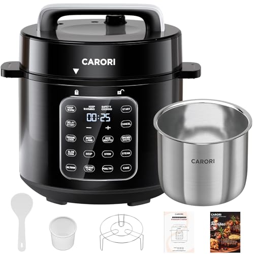 {"about_product": ["All-in-One Cooking: 9 appliances in one, pressure cooker, slow cooker, rice maker, steamer, sauté pan, sterilizer, warmer, bakery and more.", "Intuitive Touchscreen: IMD touch panel with 12 presets for easy cooking control.", "Large 6 Qt Pot: Perfect for families, batch cooking, or meal prepping, it can serve up to 6 people.", "Quick & Nutritious Meals: 1000W power cooks up to 70% faster than stovetop methods while locking in nutrients.", "Safety Protection: Equipped with 16+ protections including lid lock, steam release, and boil-dry prevention.", "Plan Ahead Meals: 24-hour delay start lets you set meals in advance and enjoy them fresh when needed.", "Non-stick Ceramic Pot: Food-grade non-stick surface reduces oil use and makes cleaning simple.", "Convenient Cleaning: Both the inner pot and lid are dishwasher-safe, and the stainless steel exterior resists fingerprints.", "Everything Included: Come with pressure cooker, non-stick inner pot, steaming rack, measuring cup, rice spoon, condensation cup, recipe book, and user manual."], "product_description": null, "product_information": {"UPC": "199874291123", "ASIN": "B0FWC3F2M1", "Brand": "carori", "Color": "Silver", "Voltage": "120 Volts (AC)", "Wattage": "1000 watts", "Capacity": "6 Quarts", "Material": "Stainless steel", "Finish Type": "Metallic", "Item Weight": "13 pounds", "Manufacturer": "carori", "Control Method": "Touch", "Operation Mode": "Manual", "Cooking Program": "Cake, Keep Warm, Pressure Cook, Saute, Steam", "Special Feature": "Dishwasher Safe, IMD Touch Screen, Keep Warm Setting, Locking Lid, Programmable", "Best Sellers Rank": "#15,066 in Kitchen & Dining (See Top 100 in Kitchen & Dining) #17 in Electric Pressure Cookers", "Item model number": "HPC-610-SUS", "Is Dishwasher Safe": "Yes", "Product Dimensions": "12.83\"D x 12.83\"W x 14.49\"H", "Date First Available": "October 15, 2025"}, "product_details": {"Brand": "carori", "Color": "Silver", "Wattage": "1000 watts", "Capacity": "6 Quarts", "Material": "Stainless steel", "Finish Type": "Metallic", "Item Weight": "13 Pounds", "Control Method": "Touch", "Special Feature": "Dishwasher Safe, IMD Touch Screen, Keep Warm Setting, Locking Lid, Programmable", "Product Dimensions": "12.83"D x 12.83"W x 14.49"H"}}