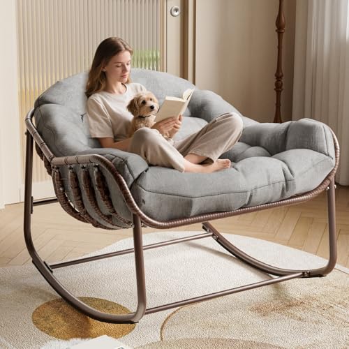 {"about_product": ["STABILITY: Reinforced steel frame with precision welding supports up to 450 LBS. Ergonomic tilt control prevents excessive rocking, ensuring safe, balanced motion for kids and adults.", "THERAPEUTIC GENTLE SWAY: The smooth rocking motion eases muscle tension and mental stress, perfect for unwinding after work or enjoying a calming afternoon tea in your garden.", "SEAMLESS SPACE TRANSITION: Transition effortlessly from porch lounging to living room elegance. Weather-resistant rattan and UV-proof Textilene cushions thrive indoors or outdoors.", "LUXURY MEETS MINIMALISM: Curved design with neutral tones complements modern, bohemian, or coastal décor. Doubles as a statement art piece for gifting or home styling.", "SETUP IN 10 MINUTES: Pre-assembled components snap together instantly. Wipe-clean surfaces resist stains and fading, requiring zero maintenance year-round."], "product_description": null, "product_information": {"UPC": "199913228653", "ASIN": "B0FZGCM8CY", "Size": "Large", "Brand": "GarveeLife", "Color": "Grey", "Shape": "L-Shape", "Style": "No Ottoman-B", "Pattern": "Solid", "Arm Style": "Armless", "Leg Style": "Curved Rocker Legs", "Back Style": "Open Back", "Model Name": "FCqMjlz0DGSU0EaFeofXsQDPq985", "Seat Depth": "20 inches", "Unit Count": "1.0 Count", "Form Factor": "Rocking", "Item Weight": "36.2 pounds", "Manufacturer": "GarveeLife", "Fill Material": "Foam", "Best Sellers Rank": "#54,881 in Patio, Lawn & Garden (See Top 100 in Patio, Lawn & Garden) #82 in Patio Rocking Chairs", "Item model number": "r7qlCn-kYK6EtXCqK9UVngau", "Product Dimensions": "38.19\"D x 22.44\"W x 11.42\"H", "Included Components": "Cushion", "Date First Available": "November 4, 2025", "Indoor/Outdoor Usage": "Indoor, Outdoor", "Age Range (Description)": "Adult", "Reclining Position Count": "1", "Maximum Weight Recommendation": "450 Pounds", "Assembly Instructions Description": "Assembly is required. The product comes unassembled and includes detailed instructions for self-assembly. This process may involve attaching the metal frame, weaving the rattan, and adding the cushion. The estimated time for assembly is 10 minutes, as mentioned in the bullet points."}, "product_details": {"Size": "Large", "Brand": "GarveeLife", "Color": "Grey", "Material": "Metal", "Product Dimensions": "38.19"D x 22.44"W x 11.42"H"}}